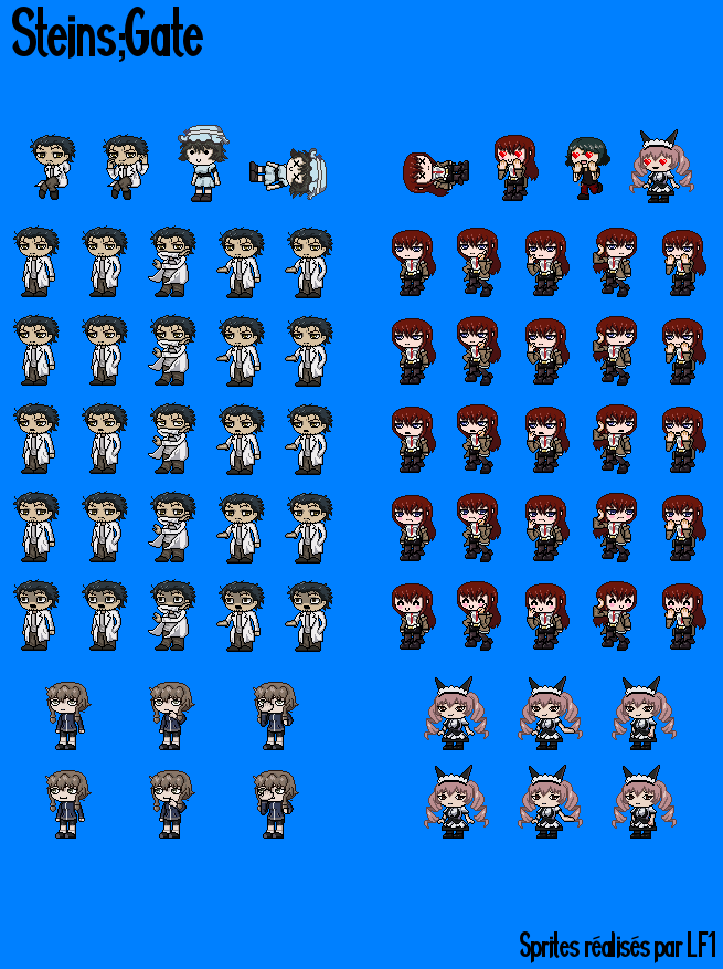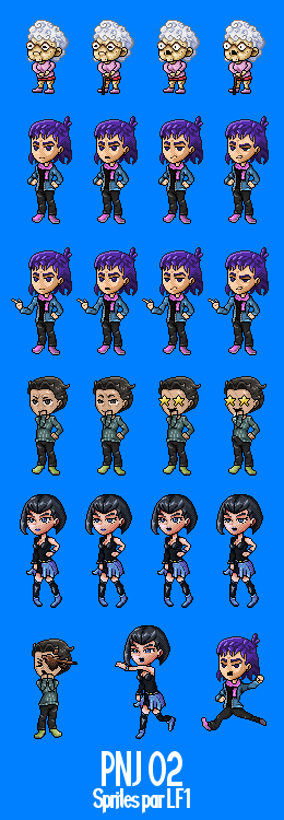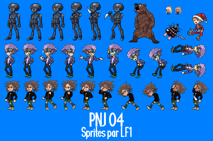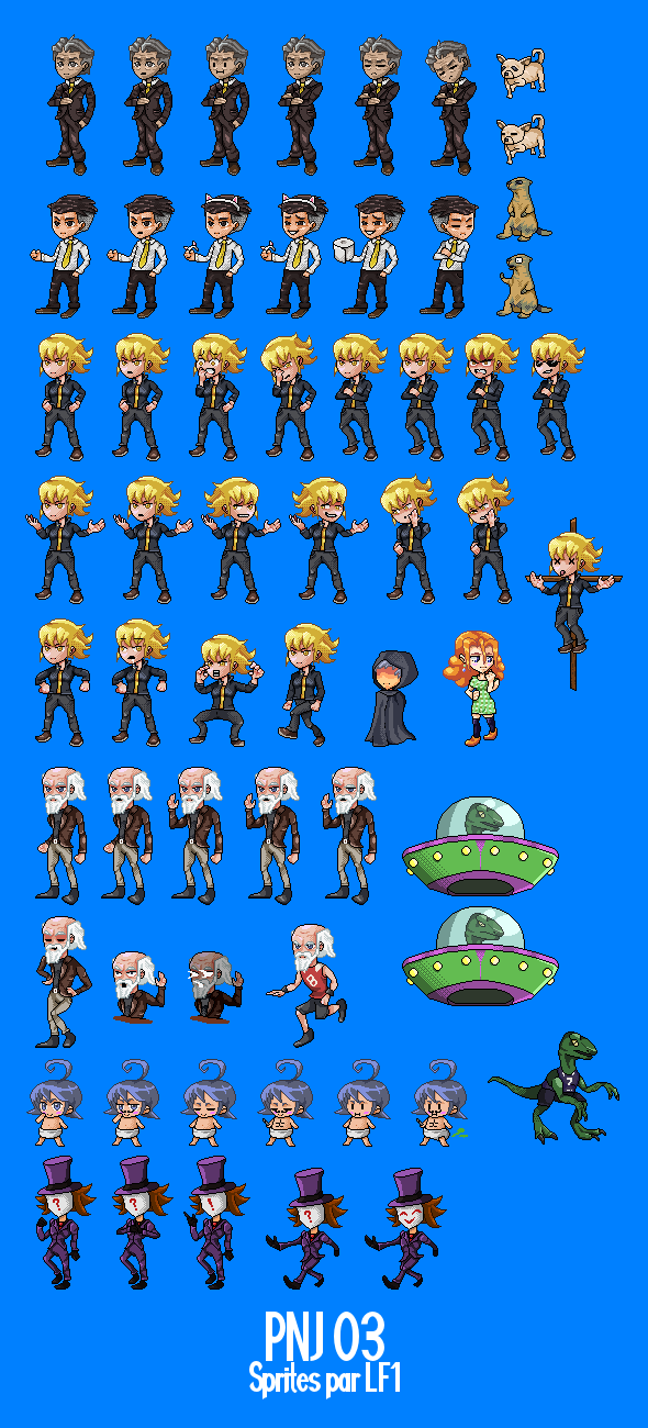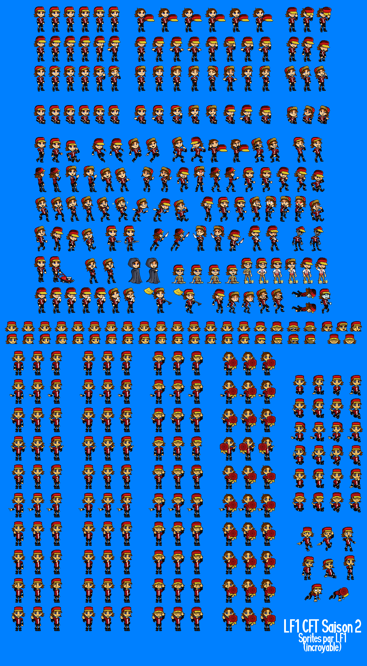 LF1 a écrit : EDIT: En fait, suite à la provocation malheureuse de Zanoss, je me suis vu obligé de compiler tous mes sprites en une seule et unique planche ET de faire des poses supplémentaires !