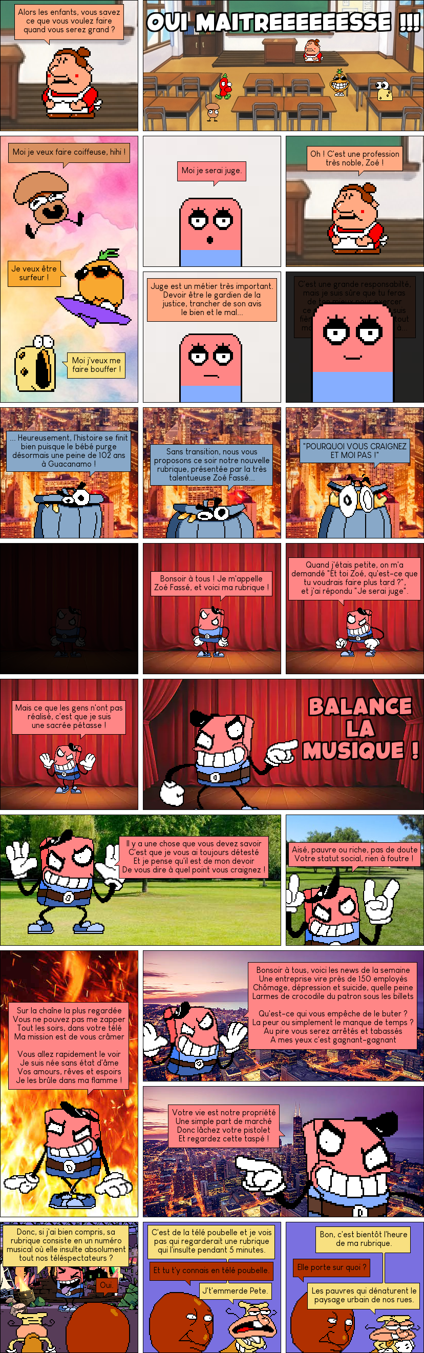 Depuis que j'ai fait la première planche de Chipo Lata, avec Arturo, j'ai trop en tête de faire un espèce de spin-off où on le verrai en dehors des caméras (ça n'arrivera qu'une seule fois dans Chipo Lata, oui je spoil !!), avec ses autres collègues de travail et tout xD Donc j'en ai profité !