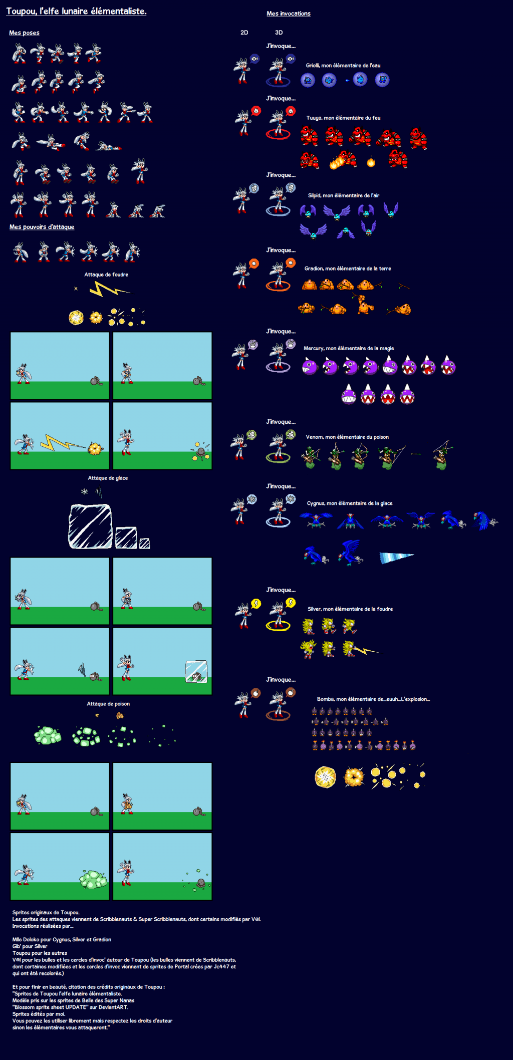 Je vais essayer, pour Tuuga je mettrais des flammes sur ses poignets.AlexiSonic a écrit :Peut-être en ajoutant des effets permanents autour d'eux, comme par exemple de petits éclairs autour de Silver ou du feu sur le dos, la tête ou les yeux de Tuuga.